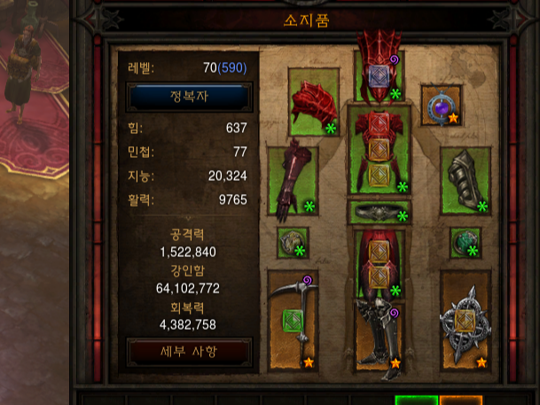 꽤 괜찮은 세트효과가 갑자기 생각나서 지능 스텟 뻥튀기시킴.